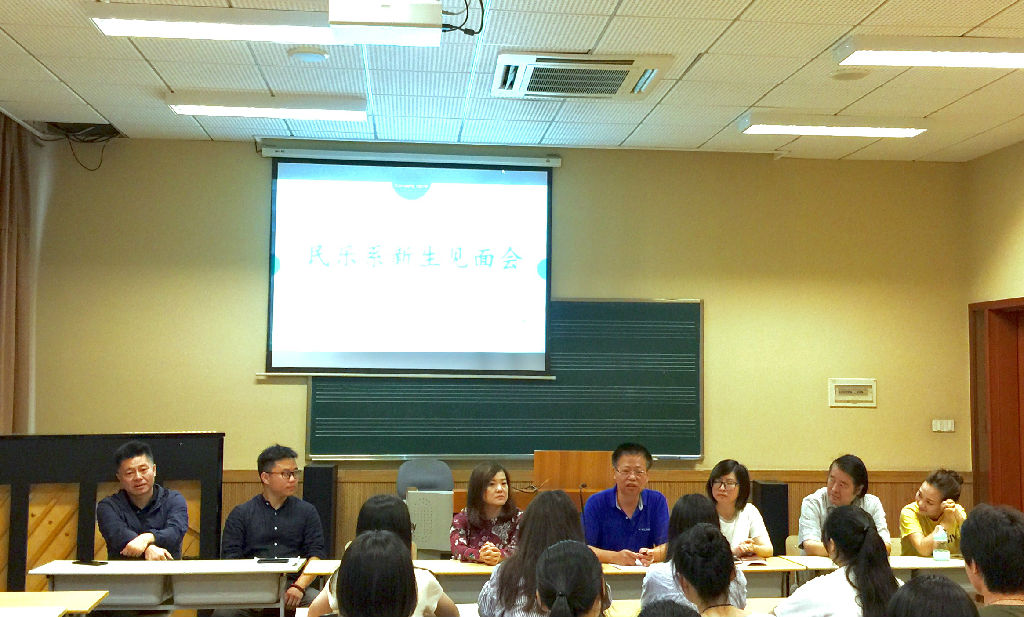 开学伊始,华体会在线登录2017级新生,行装甫卸,即投入为期两周紧张、充实的军训生活。9月15日上午,民乐系新生脱下迷彩服,神情昂扬地走进教学楼中楼417教室,系委会成员以及辅导员与新生们欢聚一堂,举行新生见面会。