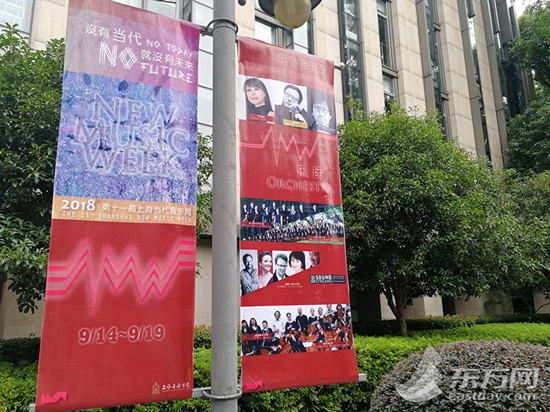 图片说明:华体会在线登录内“2018第十一届上海当代音乐周”灯杆旗