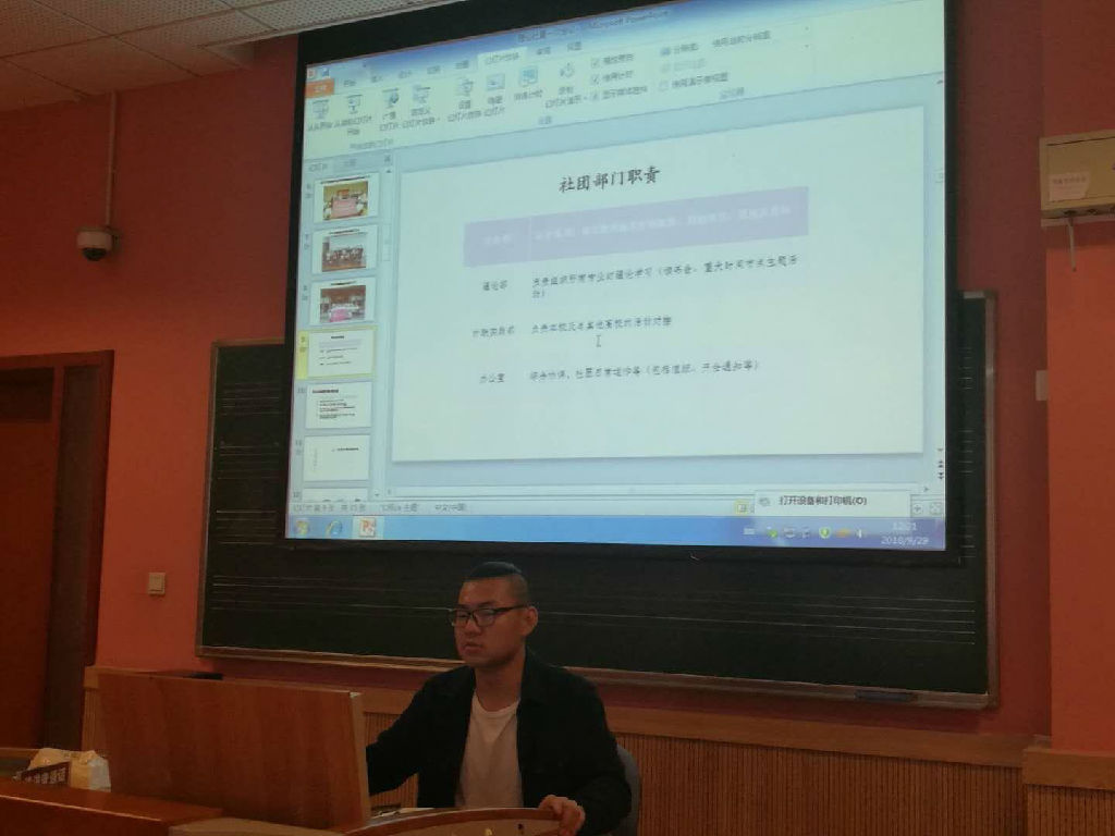随后,理论社团副团长、研究生部二年级声乐歌剧系的李帅强向同学们们介绍了理论社团的组织架构,包括办公室、宣传部、理论部和外联实践部,并明确介绍了四个社团部门的相关职责。在现场下发的报名表中,同学们联系各个部门的具体情况,根据自己的专业优势和兴趣爱好,填写申报了意向部门。