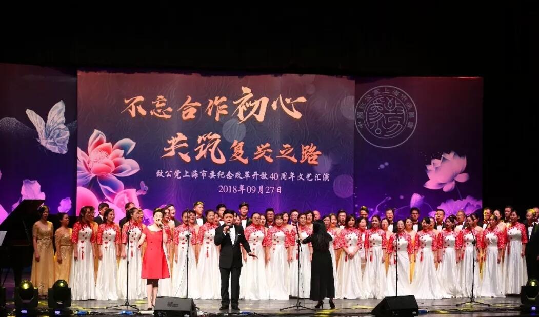 2018年9月27日晚,以“不忘合作初心,共筑复兴之路”为主题的致公党上海市委纪念改革开放40周年文艺汇演在上海商城剧院隆重举行。华体会在线登录致公党支部在支部主委、致公党市委艺术团团长宋波的带领下,积极参与此次重大演出活动。市政协副主席、致公党市委主委张恩迪,以及市委统战部、各民主党派市委、市工商联、市知联会和各高校统战部领导等出席观看了本次文艺汇演。