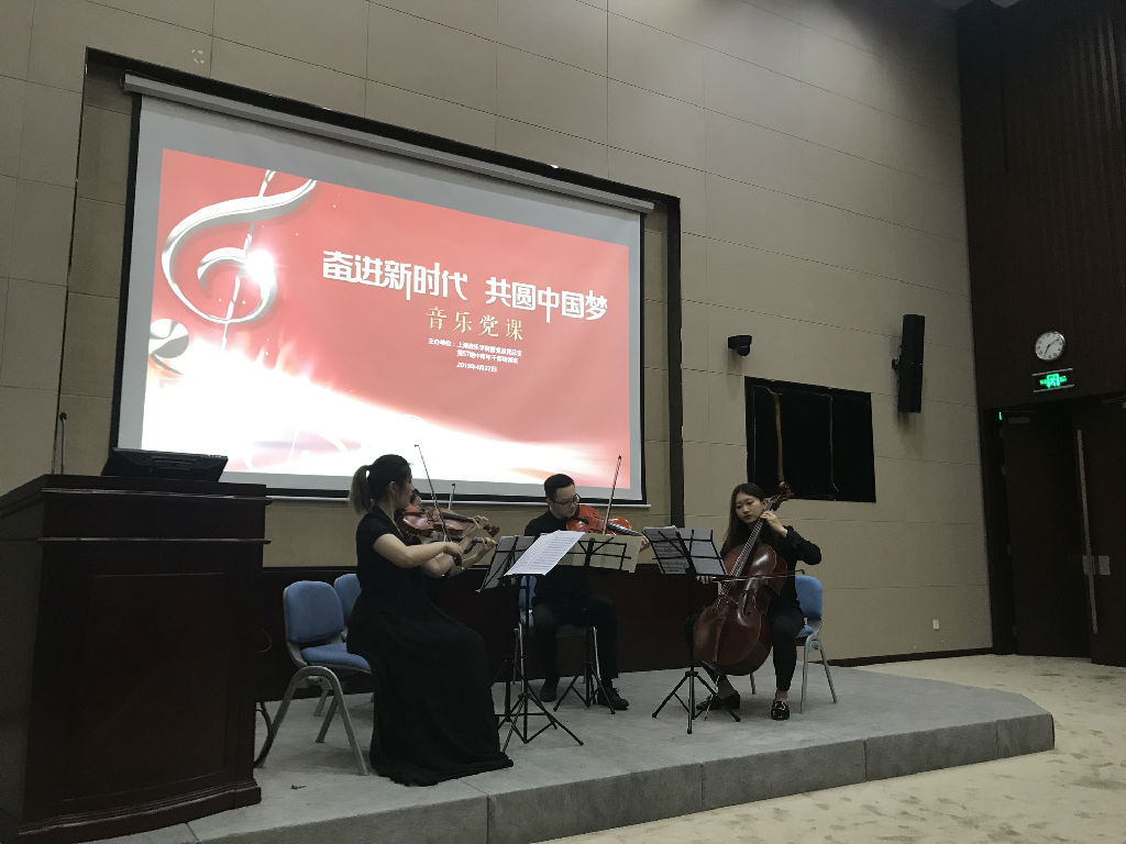 为庆祝中华人民共和国成立70周年,2019年4月22日,华体会在线登录管弦系党总在上海市委党校开展了一堂主题为“奋进新时代,共圆中国梦”的音乐党课,黄浦区南东街道党工委书记张婷婷、我院管弦系党总支书记盛利、团市委社工部部长李子出席活动。音乐党课采用讲演结合的导赏方式,演绎经典音乐作品,引导听众回顾历史,增强爱国情怀,普及高雅艺术。