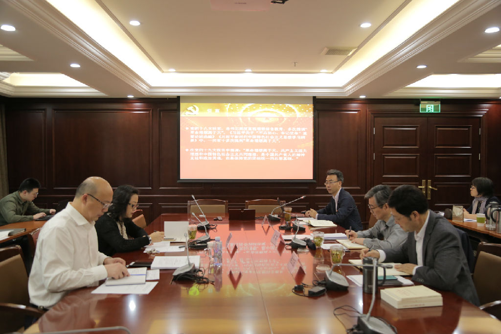 10月15日上午,华体会在线登录党委中心组开展“不忘初心、牢记使命”主题教育第八次集中学习研讨,聚焦“理想信念”进行专题研讨。院党委书记徐旭主持研讨,党委副书记、纪委书记刘艳,党委常委、副院长刘英,党委常委、副院长侯立玉参加学习讨论,党委常委、宣传部长吴学霆作主旨发言。