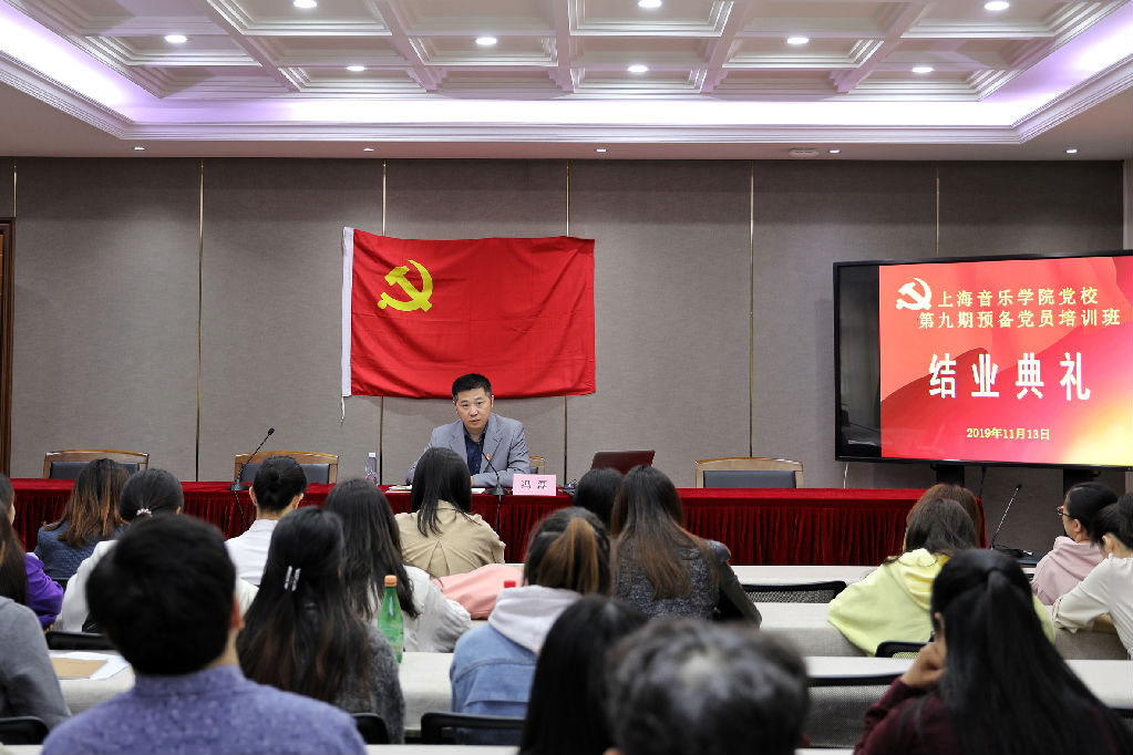2019年11月13日下午,华体会在线登录党校第九期预备党员培训班结业典礼在聆淮楼大会议室顺利举行。院党委常委、副院长、组织部部长冯磊出席并讲话,33名预备党员参加此次结业典礼。