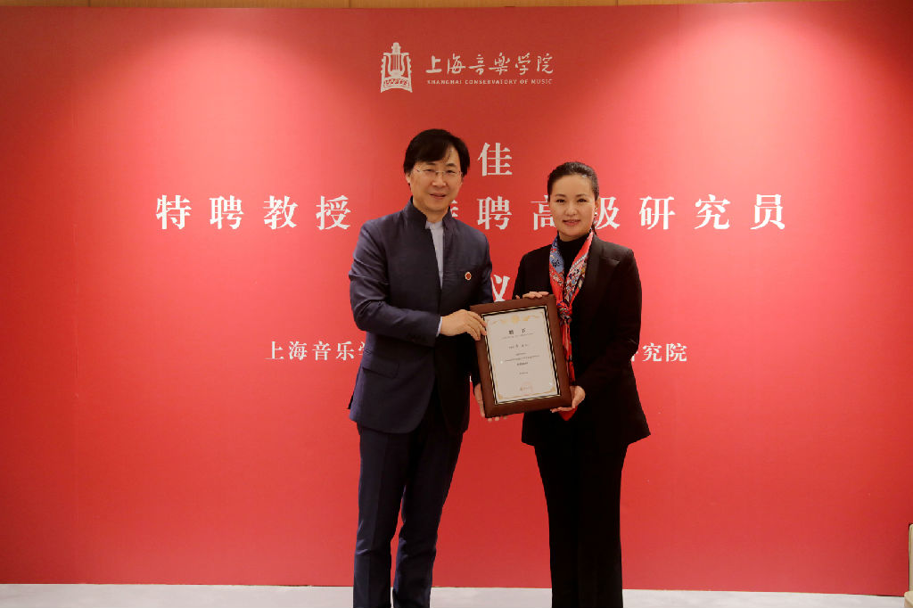 院长廖昌永教授向四位老师颁发了特聘教授、特聘高级研究员双证书。