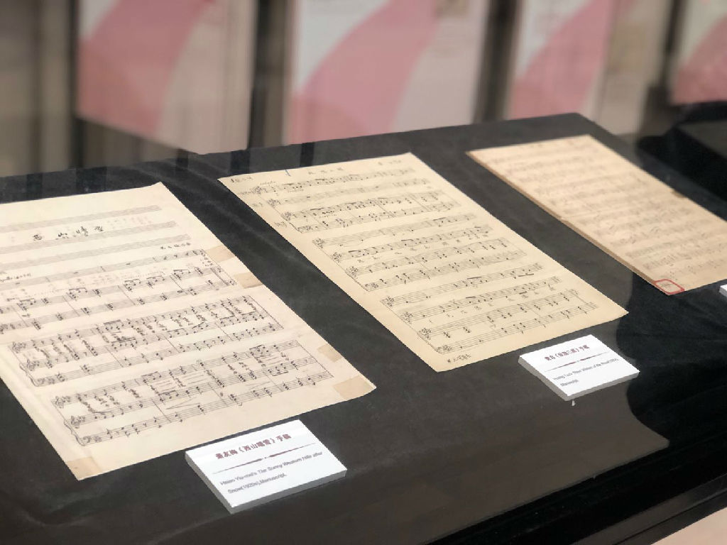 手稿方面,上音图书馆从特藏近代音乐家手稿档案中,挑选出萧友梅博士二部合唱《西山晴雪》手稿、黄自先生艺术歌曲《玫瑰三愿》《天伦歌》手稿进行展陈。
