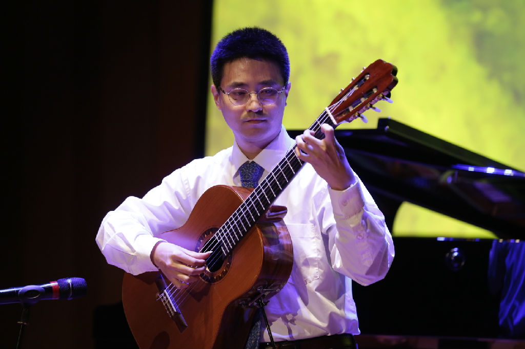 谭冰若教授始终关注社会声乐教育活动,桃李天下。他的学生涂甄莉特意从意大利归国,为表对老师的怀念,登台献唱勃拉姆斯《我的歌》(Op.106 No.4)以及歌剧《女人心》选曲《我的心坚如磐石》,情真意切,令人感慨。上世纪改革开放后,吉他逐渐在中国年轻人中受到青睐,但因其通俗性,遭到偏见与误解,被认为是不登大雅之堂的乐器。谭冰若先生勇开风气之先,通过撰写文章、开展讲座,肯定了吉他的艺术价值。经过谭冰若先生的热情支持,吉他这门乐器越来越被人们所接受,在国内迅速发展。由上海音乐家协会吉他专业委员会主任闵振奇独奏古巴电影同名曲《十一月的一天》,上海音乐家协会吉他专业委员会吉他乐团合奏《阿尔罕布拉宫的回忆》,两部古典吉他作品让我们回想起谭冰若教授对于肯定吉他艺术价值所作出的努力。最后,音乐会在大合唱《国歌串烧》中达到高潮。