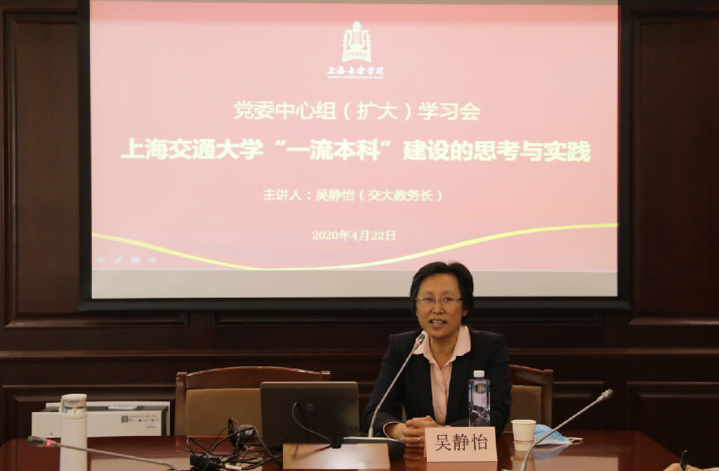 本次中心组学习邀请到上海交通大学副教务长、教务处处长吴静怡教授作关于“上海交通大学’一流本科’建设的思考”的专题报告。校党委中心组成员、党政领导、两委委员、中层干部参加学习会,党委副书记曹荣瑞主持。
