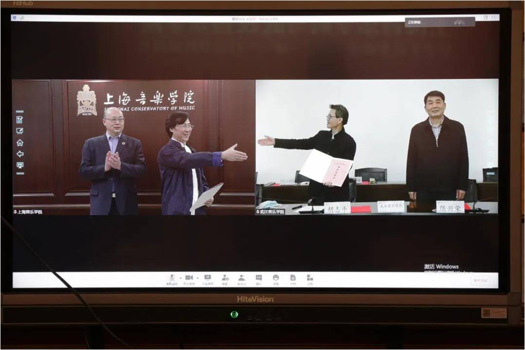 在徐旭、陈兴荣的共同见证下,廖昌永与胡志平签订《华体会在线登录与武汉音乐学院就业创业工作“一帮一”帮扶协议》。借助网络信息技术,两校领导不仅实现“同框”,而且隔空“握手”。