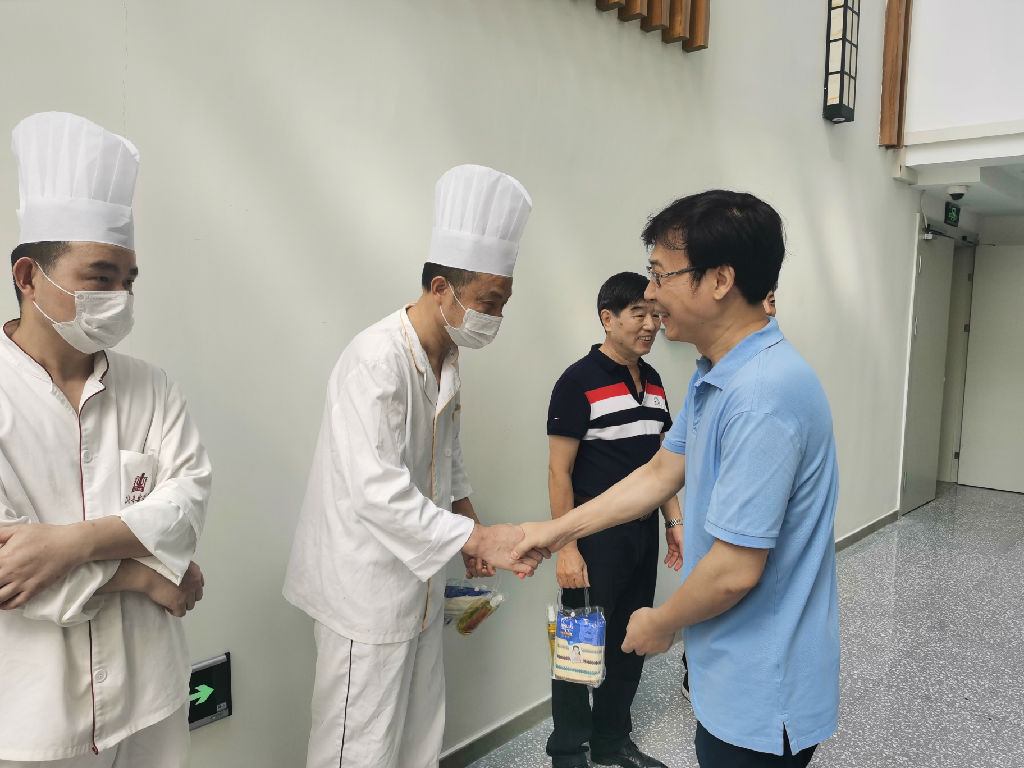 8月17日上午,华体会在线登录党委书记徐旭、院长廖昌永、副院长刘英、侯立玉看望慰问暑期仍坚守工作岗位的教职员工、食堂工作人员、物业工作人员等,送去夏令物品,感谢他们在高温酷暑中坚守一线。