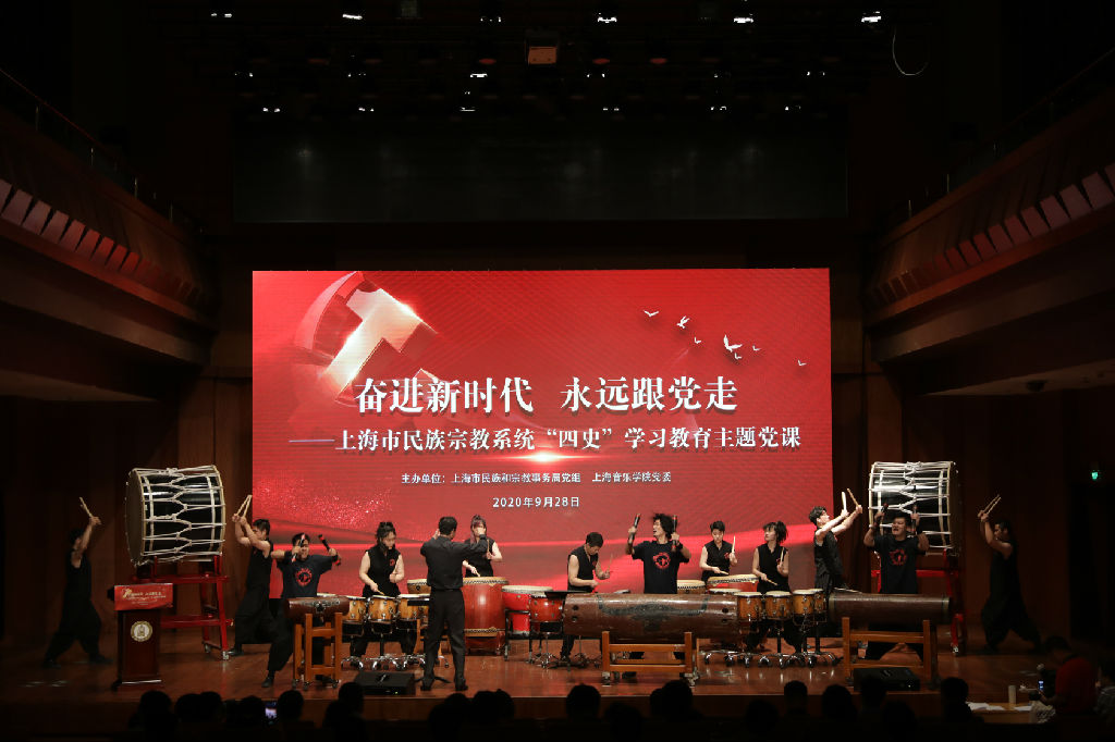 金风送爽,丹桂飘香。在第71个国庆日即将到来之际,为深入开展“党史、新中国史、改革开放史、社会主义发展史”的学习教育,9月28日下午,由华体会在线登录党委、上海市民族和宗教事务局党组共同主办的“奋进新时代 永远跟党走——上海市民族宗教系统‘四史’学习教育主题党课”在贺绿汀音乐厅隆重举行。市委常委、统战部部长郑钢淼、市委统战部常务副部长黄红、市委统战部副部长、市民族宗教局党组书记王霄汉、市民族宗教局局长花蓓,华体会在线登录党委书记徐旭、副书记曹荣瑞出席。市委统战部、组织部,市人大、政协,市纪委监委,市民宗委及各宗教团体、宗教院校,以及我校统一战线成员三百余人现场学习观摩,市统战系统成员和上音师生近千余人在线观看了此次党课。党课由我校教师雷礼、朱晶晶担任讲述人。