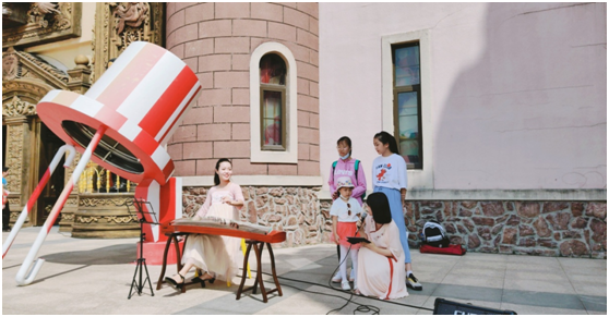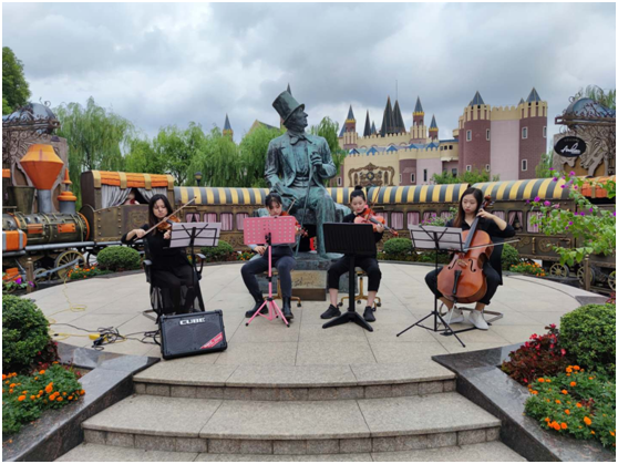 坐落于杨浦区新江湾城国际社区的上海安徒生童话乐园,是经丹麦王国官方授权的全球首家以童话作家“安徒生”而命名的大型主题乐园,拥有全国第一家安徒生博物馆。乐园作为上海市和杨浦区双重点项目,是中丹文化、商贸、旅游等交流沟通的重要平台,也是我校九月建立的一个校级实习实践育人平台。国庆期间,上音学生在此开展充满活力与想象的音乐普及和音乐推广活动,演出类型包括铜管五重奏、手风琴五重奏、重唱与合唱、古筝与声乐组合、流行演唱、竹笛重奏、二胡独奏与重奏、吉他弹唱等,互动形式包括气息PK、看图猜歌、现场教学、乐器介绍、知识问答、互动+教学,通过实习实践,同学们深度了解国内主题乐园的发展现状和未来广阔发展趋势,并学以致用、积极探索“音乐+乐园”的文化产业模式。
