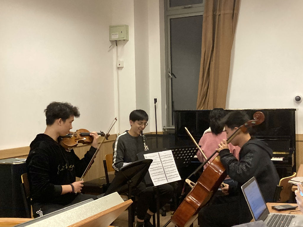 风格是我们诠释音乐的一个重要部分,怀斯博士以第一讲中教授的“描述-分析-解释”三步法则为基础,以“风格”定义的探讨为起点,带领大家将三步法则应用到音乐风格的讨论中,并通过两个四重奏组合现场表演的两个风格迥异的作品片段,帮助大家建立更加多样化的英语词汇。同时,怀斯博士也同大家分享了他作为室内乐教练和管弦乐队指挥的经验,现场指导两个组合进行不同乐器的单独示范以及同一段音乐不同演奏风格的示范,为大家打造出更为丰富而鲜活的音乐风格词汇语境。