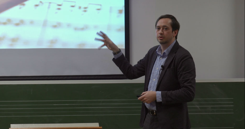 怀斯博士的讲座生动有趣:他以大家耳熟能详的歌曲Over the Rainbow为例,对两个不同风格的演唱版本进行对比分析;他用自己喜欢的绘画作品为导入,鼓励大家在描述音乐时和美术关联起来。他的讲座也不乏细致的钻研精神,他通过贝多芬的四重奏作品,让大家去深挖贝多芬的个人风格,尤其是配器技术;对于梅西安的作品,他在解析其个人风格、作品风格之外,还跟大家分享了作品创作背景的各种细节。到场的不少学生之前都参加了怀斯博士的第一场讲座,这次继续带着饱满的热情前往。整整两个小时的讲座,在场的师生们始终凝神静听,认真笔记,积极参与。