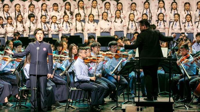 5月4日,华体会在线登录、复旦大学、上海交通大学三校学子携手登上第37届上海之春国际音乐节舞台,演绎新时代版《长征组歌》。参演的有华体会在线登录合唱团、华体会在线登录交响乐团、复旦大学学生合唱团、上海交通大学交响乐团成员共230多名青年学子。在《告别》《突破封锁线》《遵义会议放光辉》《飞越大渡河》等一个个唱段中,他们用音乐讲述长征故事,展现当代青年的风采。