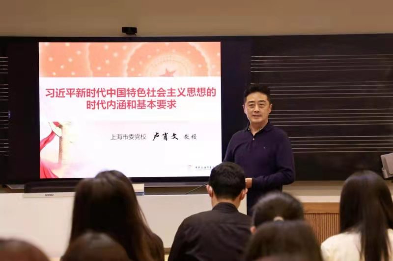 2021年5月19日下午,党史学习教育系列的首场讲座邀请到了上海市委党校卢肖文教授,以“习近平新时代中国特色社会主义思想的时代内涵和基本要求”为主题开讲。研究生部全体教师党员、研究生党员代表、研究生入党积极分子参加此次专题学习。