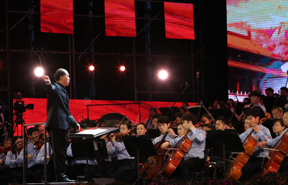 5月23日,张国勇执棒华体会在线登录青年交响乐团演奏《红旗颂》。新华社记者 方喆摄