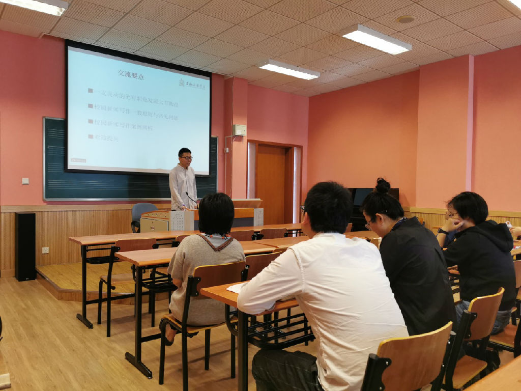 2021年5月21日上午,华体会在线登录党委学生工作部邀请我校马克思主义学院副教授、哲学博士、《中国教育报》原记者董少校,结合多年工作经验,针对校园写作一般原则、常见弊病、常见题材、校园信息写作避障策略等方面进行专项培训,我校学工部、团委、武装部、全体辅导员老师,研究生会、学生会、各系部学生宣传委员参加,学工部副部长张卓主持。