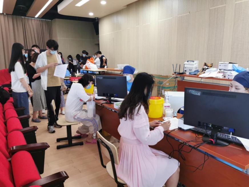 此次疫苗实地接种分为登记区、预检区、接种区、留观区和紧急救治区5个区域,分时段、分批次有序进行,各区域均有志愿者同学现场引导、辅导员老师现场关心学生接种情况,整个接种过程秩序井然,安全高效。