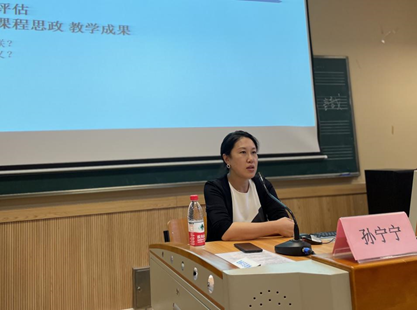 教务处副处长(挂职)孙宁宁以《教育评估视角下课程思政与教育成果的体现》为主题,以评估的意义、种类、趋势三项内容为导入,着重提出了“立德树人”根本任务在各类评估中的标志性体现。继而介绍了我校课程思政工作方案,讲解了部分优秀案例,为教师们的课程思政教学改革提供参考。