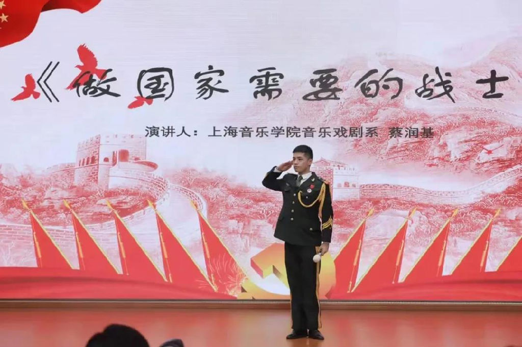 蔡润基曾于2016年9月入伍,怀揣着爱国之心、报国之志,为大家讲述了自己的军旅生涯,情真意切,感人至深。伟大祖国的复兴崛起,离不开万千战士们用身体和信念筑成钢铁长城,更需要每一个平凡的我们对党和国家国防事业的关注和支持。