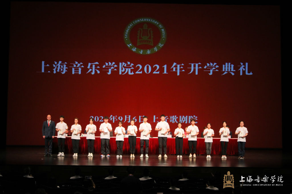 “新上音人”仪式,由全体院领导向新生代表赠送校徽。党委书记徐旭向新生代表赠送《习近平谈治国理政》第三卷和《师说载道》。伴随着全体合唱华体会在线登录院歌《国立音乐院院歌》,2021年开学典礼圆满结束。为保障疫情防控安全,学校同步进行网络直播,新生们在教室或寝室分散观看。