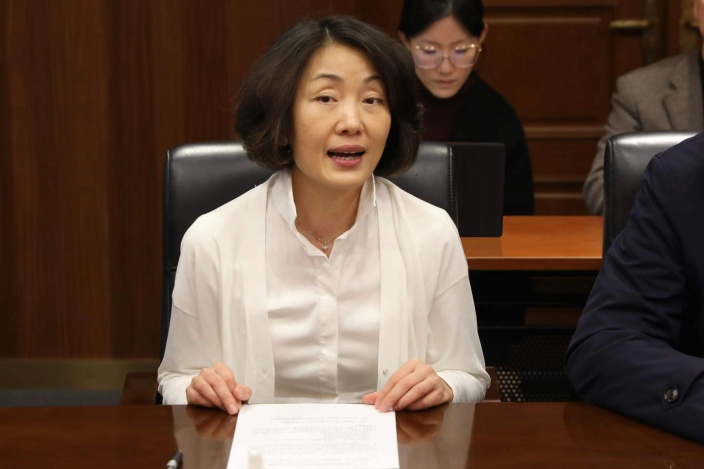 民建上海市委组织部部长高文红宣读《关于成立民建上海音乐学院支部决定的通知》和《关于任命民建上海音乐学院支部主委的决定》。