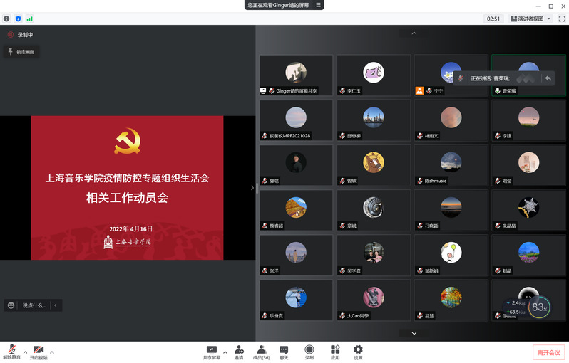 4月16日,党委组织部召开疫情防控专题组织生活会相关工作动员会,全校各级党组织书记、副书记参会。会上传达和学习了习近平总书记及党中央、上海市委市政府对于现阶段疫情防控工作的重要指示,并就凝心聚力开好抗疫专题组织生活会,坚持”动态清零“不动摇,和对接下来学校的防控相关工作提出了新的要求与战略部署。会议由党委组织部部长郭恺主持,党委副书记曹荣瑞作动员讲话。