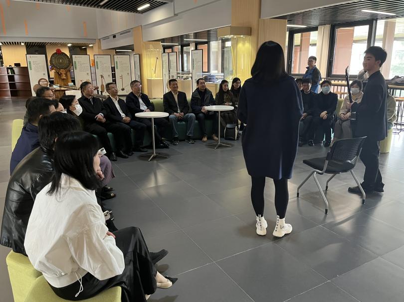 大家首先来到零陵路校区东方乐器博物馆参观“五十六个民族一首歌”乐器展,并观摩由上音汉族、满族、藏族等附中、本科、硕士、博士学生带来的民族乐器弹奏和民歌演唱。随后在教学大楼一楼会议室举行交流讨论会。我院东方乐器博物馆助理研究员邢媛介绍了学校民族团结进步教育基地建设情况,复旦大学、上海理工大学、上海第二工业大学、上海工艺美术职业学院分别介绍了2023年市民族团结进步教育基地的申创情况。