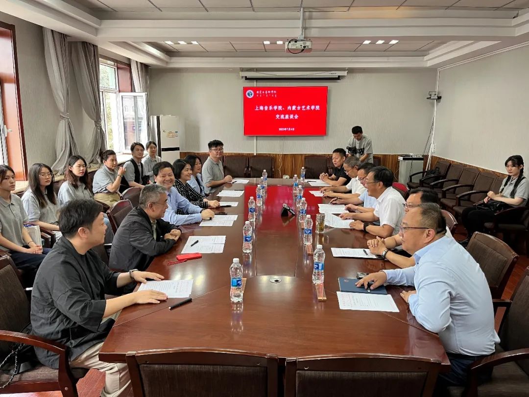 团队一行与内蒙古艺术学院进行了深入交流,座谈会上,院长赵海忠等对上音师生的到来表示诚挚欢迎,他介绍了内蒙古艺术学院的发展与规划。随后一行人观看了舞剧《草原英雄小姐妹》片段和长调《成吉思汗的两匹骏马》《黑骏马》、马头琴独奏《轻快的白马》等表演。侯立玉说到,去年侯守智副院长等5位同志来上音挂职,希望以后能在学科建设、人才培养等方面进行更加广泛的合作与交流。